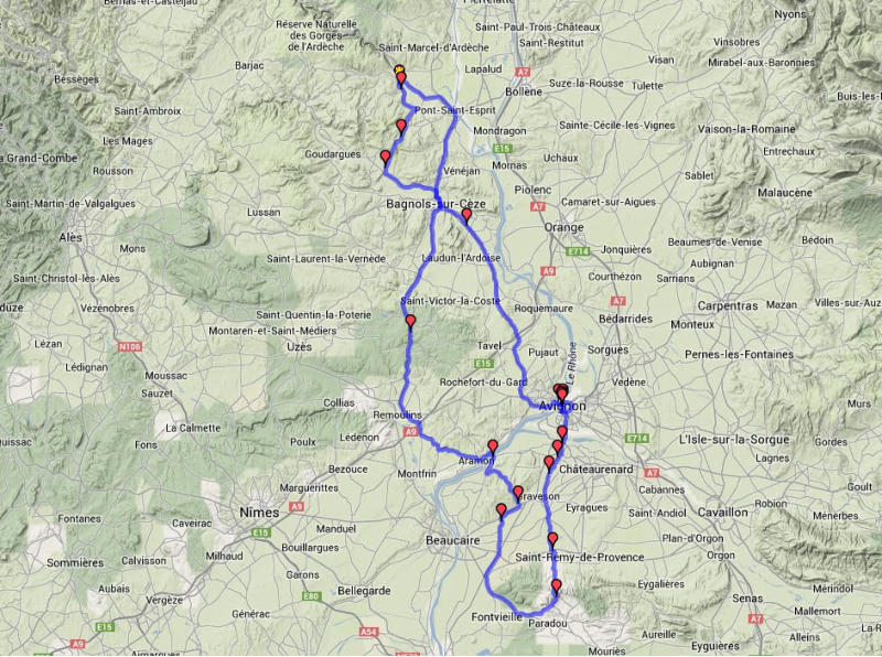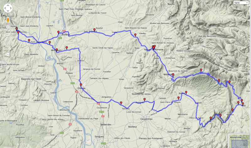 bike-videos  travel reports  pictures  photo gallery tach filme reiseberichte galerie kontakt über impressum links 2013-2021 Dieter Dziendziol alias woodpecker grafic arts . impressum © zurück zur Startseite Hier findet ihr die Strecken und Waypoints der Highlights zu den Filmen Provence 2013 als Google-Maps-Link, aber auch die jeweilige Gesamtstrecke als *itn- (TomTom) oder *gpx- (Garmin) Datei zum download. Film Nr.    1     2     3         4           5     6   7     8     9         10     11     12    13          14         15 Highlights    Auberge van Beethoven     Vaison-la-Romaine  Mont Ventoux   Sault  Gorges-de-la-Nesque  Orange     Le Claps  Col de Rousset  Col de la Chau  Col de la Bataille  Saint-Jean-en-Royans   Cirque de Comb Laval  Pont-en-Royans   Col de Toutes Aures   Malleval  Gorges-du-Nan   Gorges-des-Ecouges  Hotel “Le Maronnier”   Gorges-de-la-Bourne  Pre Faure  Col de l’Azelier  Gresse-en-Vercors   Mont Aiguille  Col de Menée   Col de Pennes  Saint-Nazaire-le-Désert   Gorges de Trente Pas    Pont du Gard  Nimes Arena  Nimes Wasserverteiler  Uzés Source d’Eure    Avignon  Le Baux       Pont d’Arc Teilstrecke in Google-Maps download *.itn download *.gpx Waypoint in Google-Maps Strecke       zum Mont Ventoux  Auberge/Vaison-la-Romaine/Mont Ventoux    Mont Ventoux/Sault/ Gorges-de-la-Nesque /Orange/Auberge      3-Tage Vercors  1. Tag Nyons/Die/Vassieux-en-Vercors/ Saint-Jean-en-Royans          2. Tag Saint-Jean-en-Royans /Pont-en-Royans    Pont-en-Royans/Presles   Presles/Malleval/ Saint Gervais     Saint Gervais/Rencurel     Rencurel/Grenoble/Gresse-en-Vercors        Gresse-en-Vercors/Mont Aiguille/Col de Meneé    Col de Meneé/Col de Pennes/ Saint-Nazaire-le-Désert    Saint-Nazaire-le-Désert/ Nyons/Auberge   Pont du Gard/Nimes/Uzés          Avignon/Le-Baux-de-Provence         Rund um die Ardéche Ardèche / Gard / Vercors 2013 - Strecken und Wegpunkte